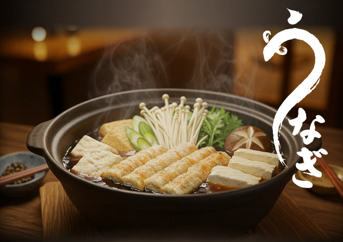 ◼︎セット内容特製出汁、野菜セット、豆富、一心自家製柚子ポン酢、わさび、うなぎの骨(出汁用)、美味しい作り方説明書